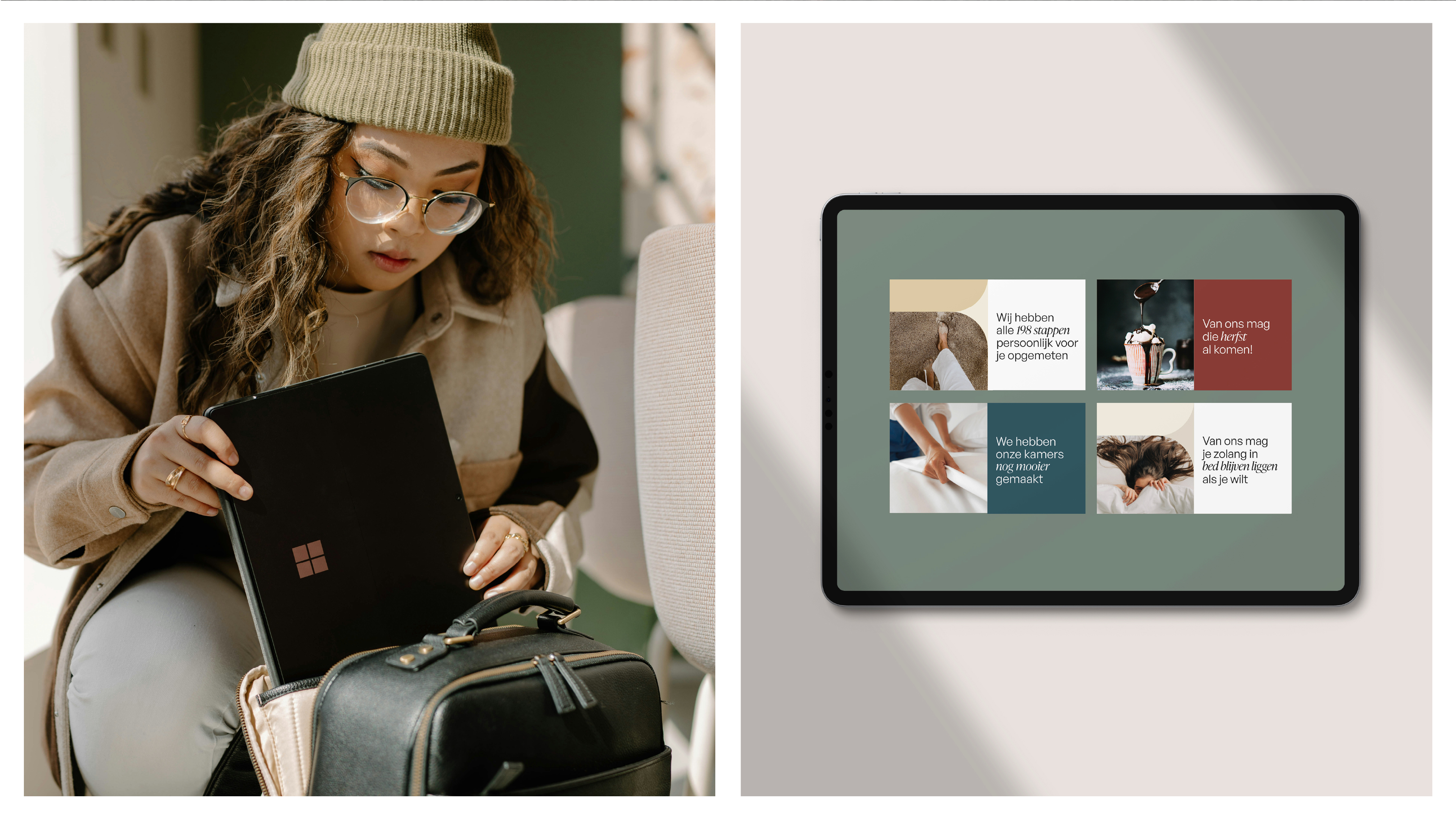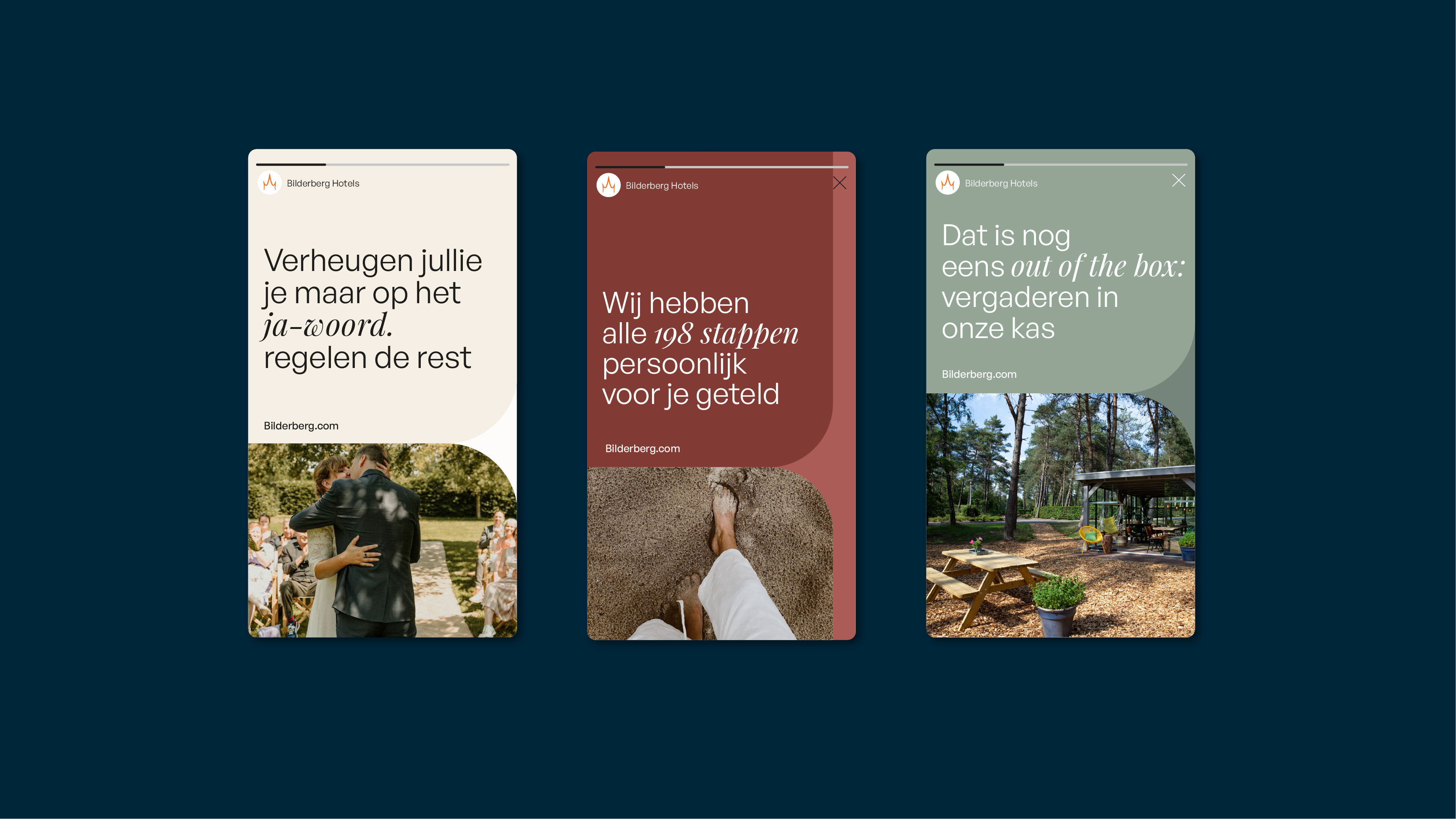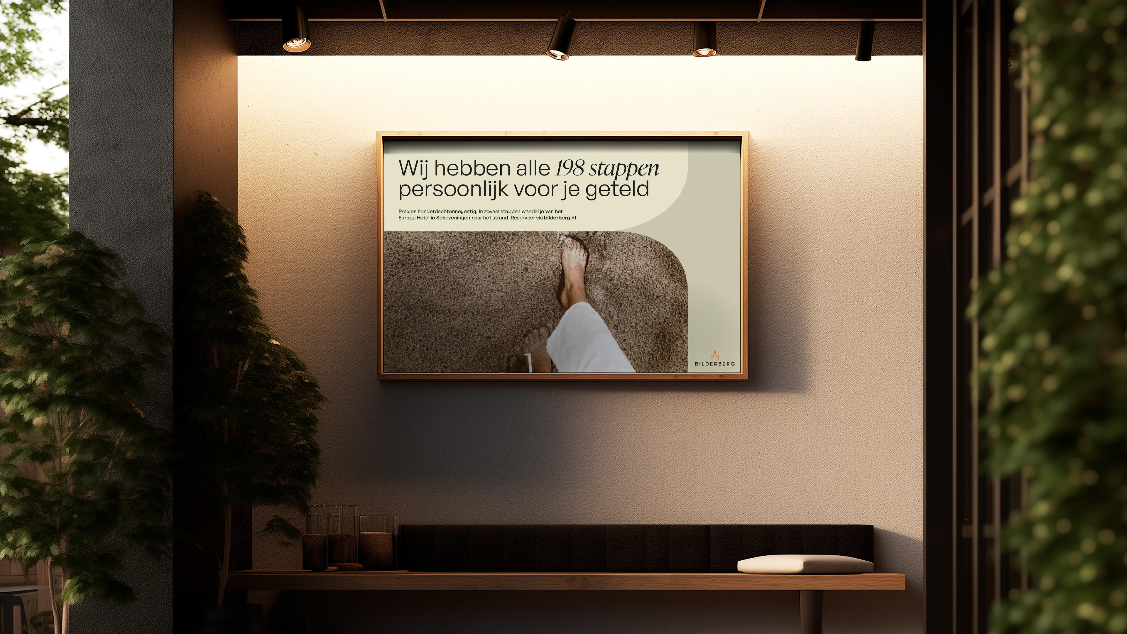 When creating Bilderberg's new visual identity, we sought the perfect balance between heritage and innovation. The renewed logo and the introduction of an iconic 'B' graphic element give the brand a contemporary look, without denying its rich history.