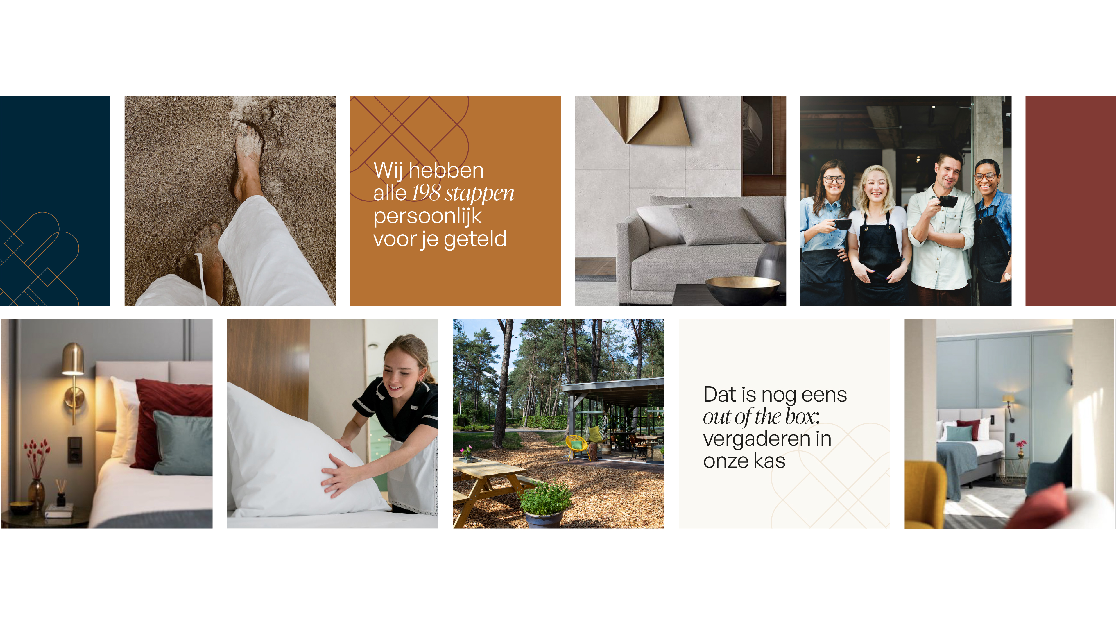 The unique brand patterns are inspired by historical details from the various hotels. These subtle, repetitive elements, combined with a carefully crafted photographic style, define the brand’s signature. Instead of staged shots, we focus on authentic moments that capture the essence of Bilderberg: genuine care and attention for one another.