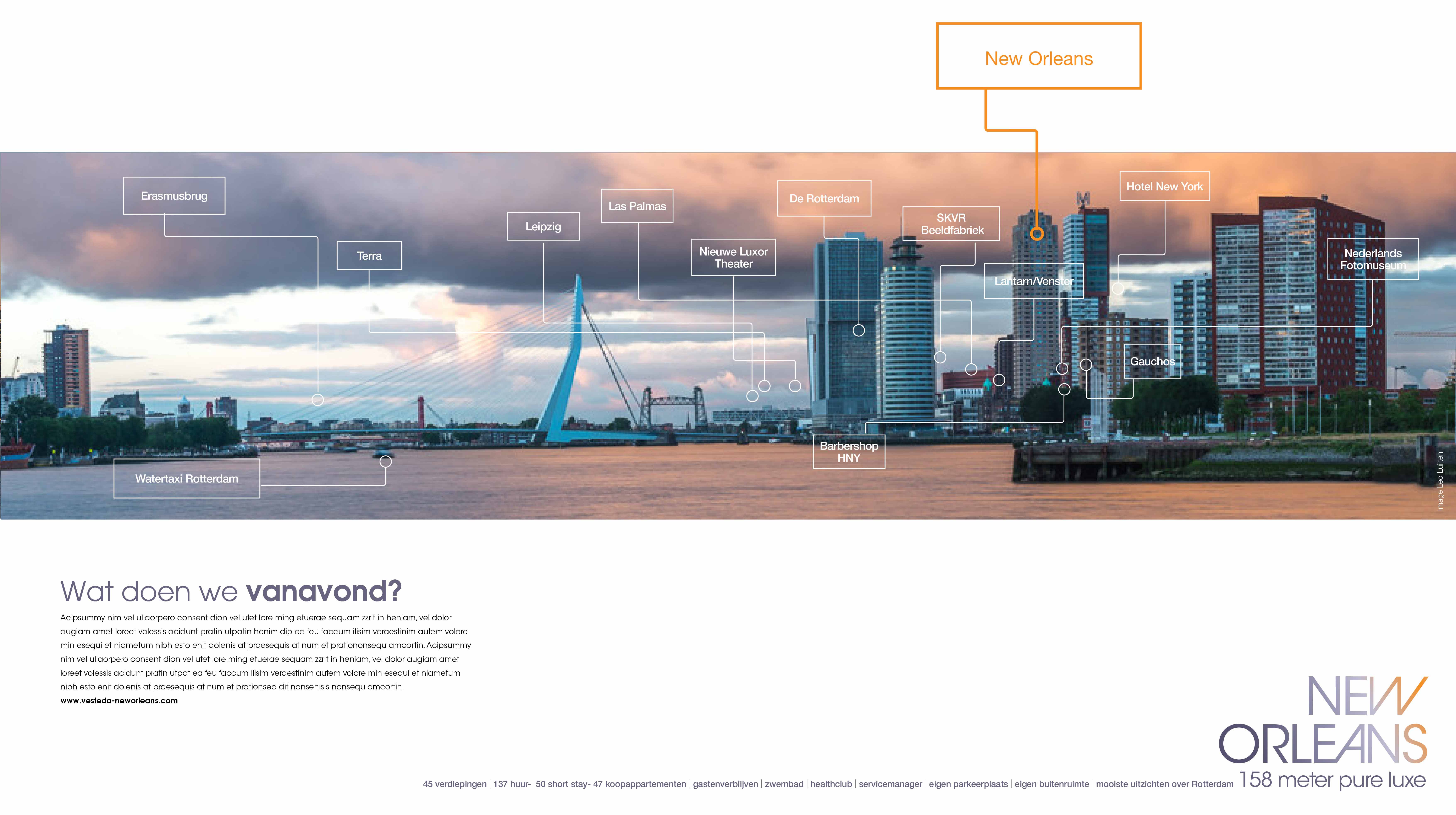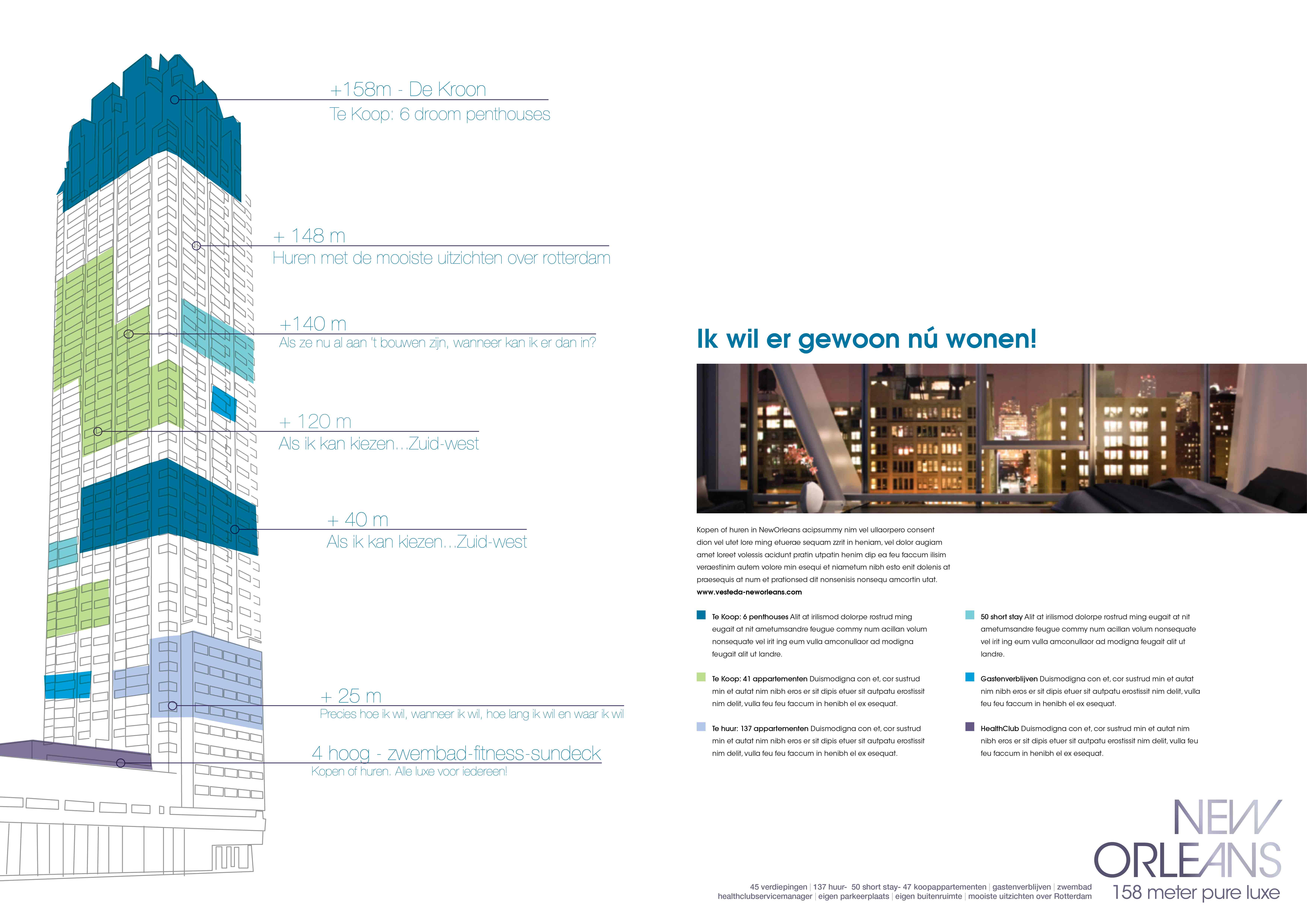 The New Orleans skyscraper at Wilheminapier is de tallest residential tower in the Netherlands at a height of 158 meters.